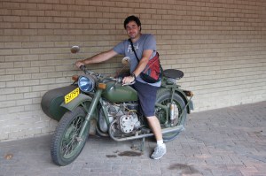 Hoje fomos procurar um apartamento para alugar, e qual não foi minha surpresa quando vi na garagem de um deles, um sidecar da segunda guerra mundial.