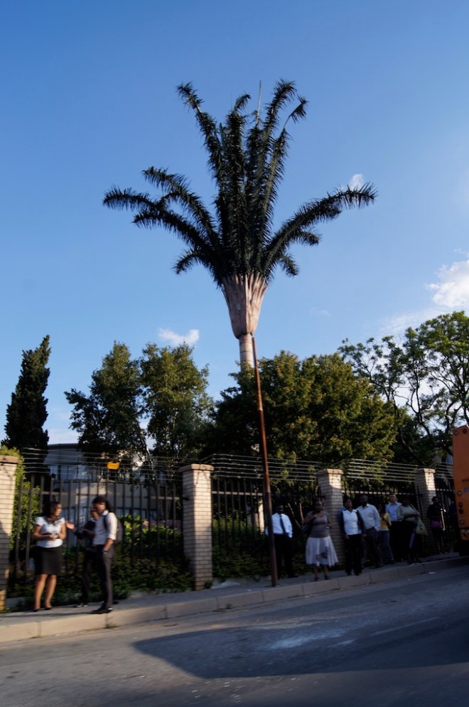 Quando vi o tronco destas arvores, achei muito curioso. Olhando com atenção vi que são antenas de celular, elas estão espalhadas por toda a cidade.
