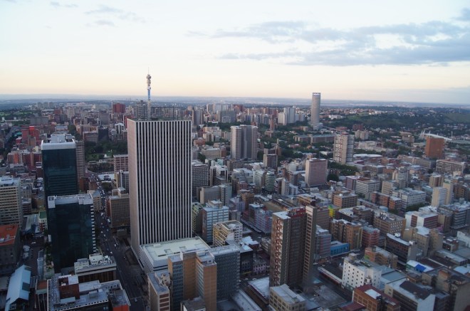 Esta é a vista do prédio mais alto do continente. Fica no centro de Johannesburg.