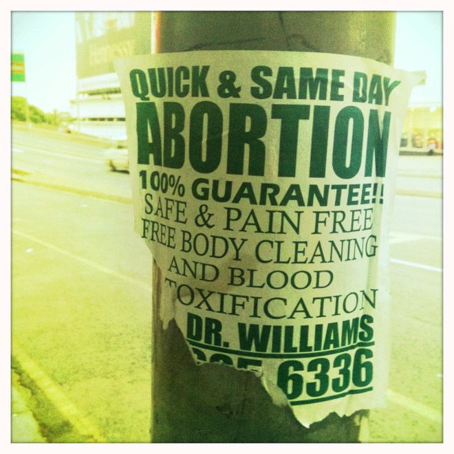 Hoje estava acompanhando uma filmagem do Constâncio no Centro de Johannesburg e me deparei com um folheto anunciando aborto rápido e no mesmo dia.