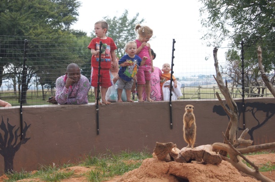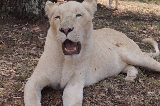 Lá tem vários animais, entre eles leões (inclusive o raro leão branco), hienas, girafas, gnus, leopardos…