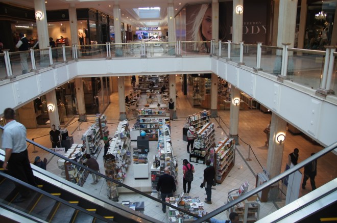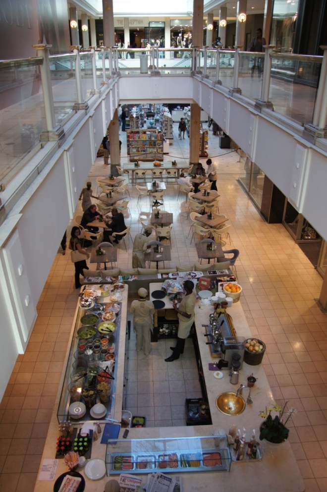 Não tem tanta opção como o Sandton City ou Rosebank, e tem apenas as lojas mais chiques como Le Creuset, Benetton e o restaurante Life.