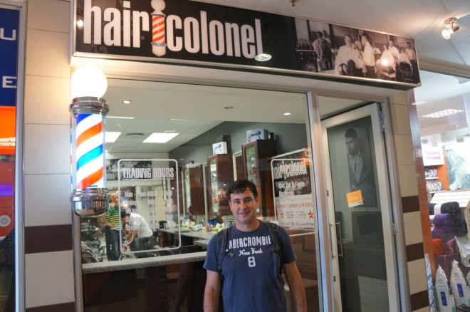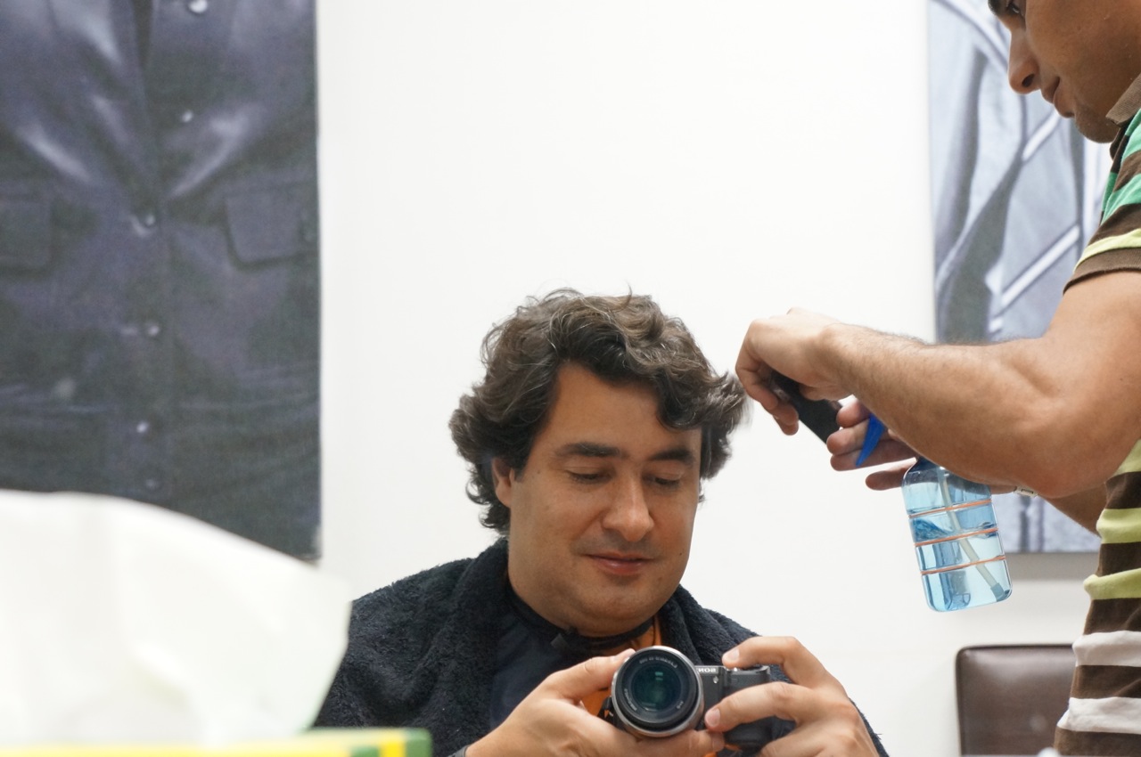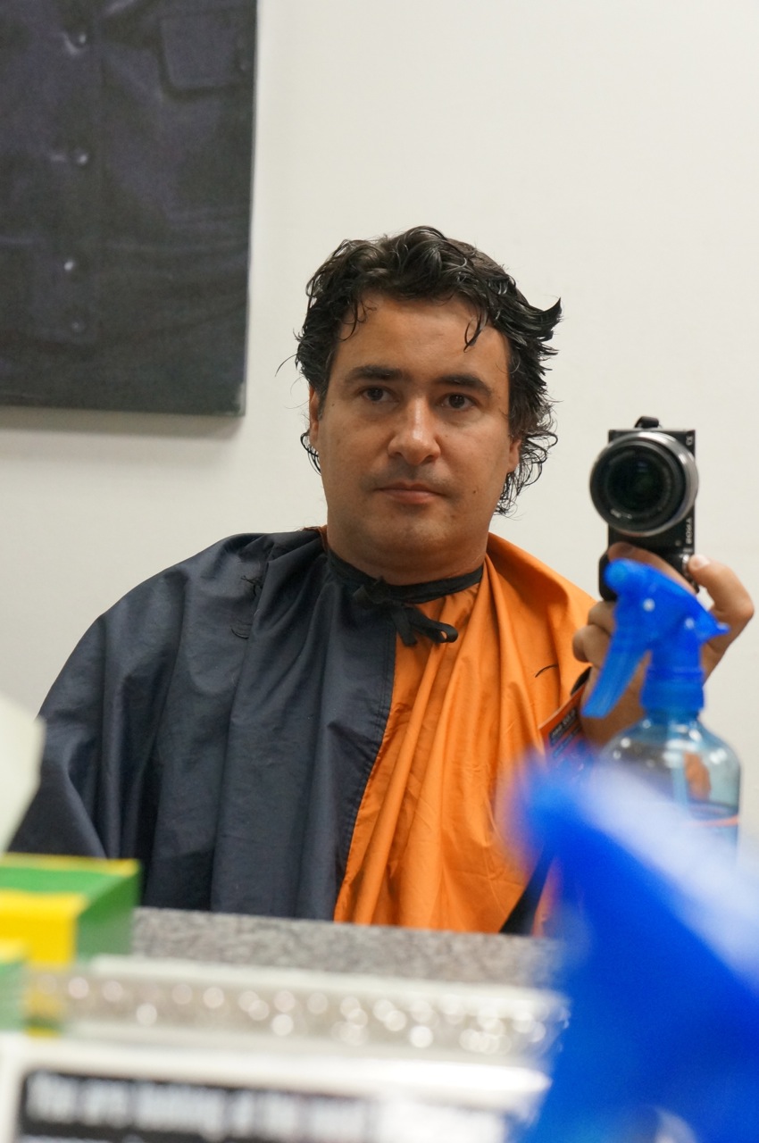 Quando cheguei lá o barbeiro me perguntou como eu queria o corte (sempre fui no mesmo barbeiro em São Paulo e nunca precisei falar como gosto), fiquei sem saber como explicar, apenas mostrei que uso para o lado e não queria muito curto.
