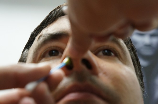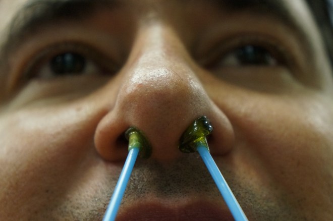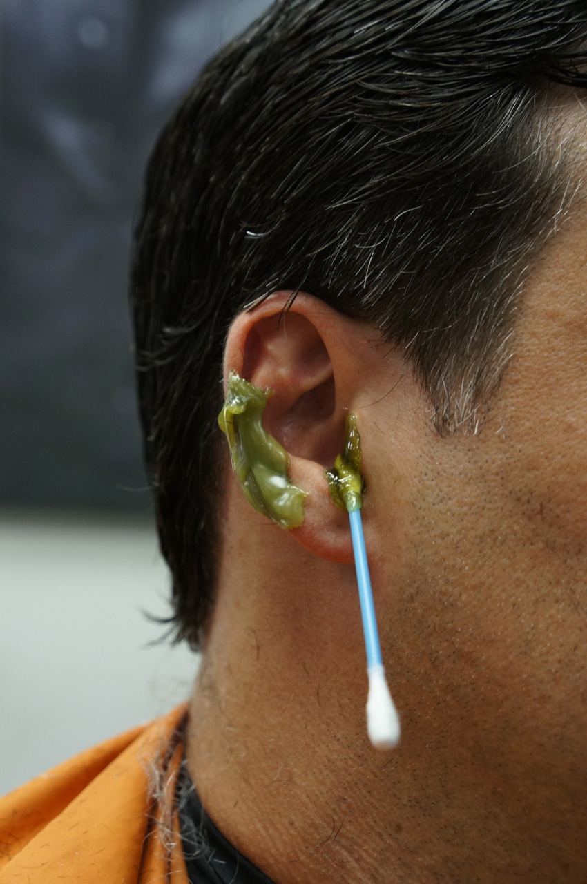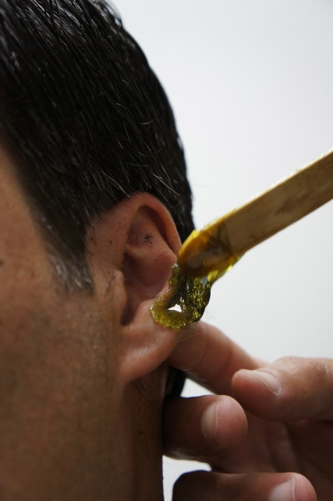 Ele imediatamente pegou cera quente e passou na minha orelha, e enfiou cotonetes com a mesma nos meus ouvidos e no meu nariz.