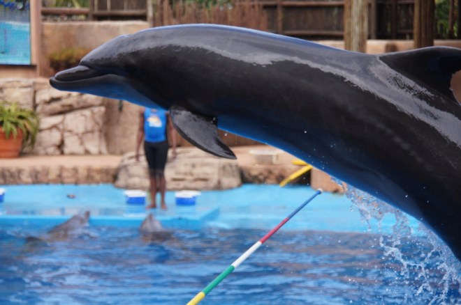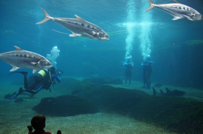 Tem show com golfinhos, focas, pingüins e você pode mergulhar com tubarões a arraias.