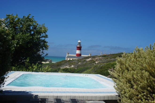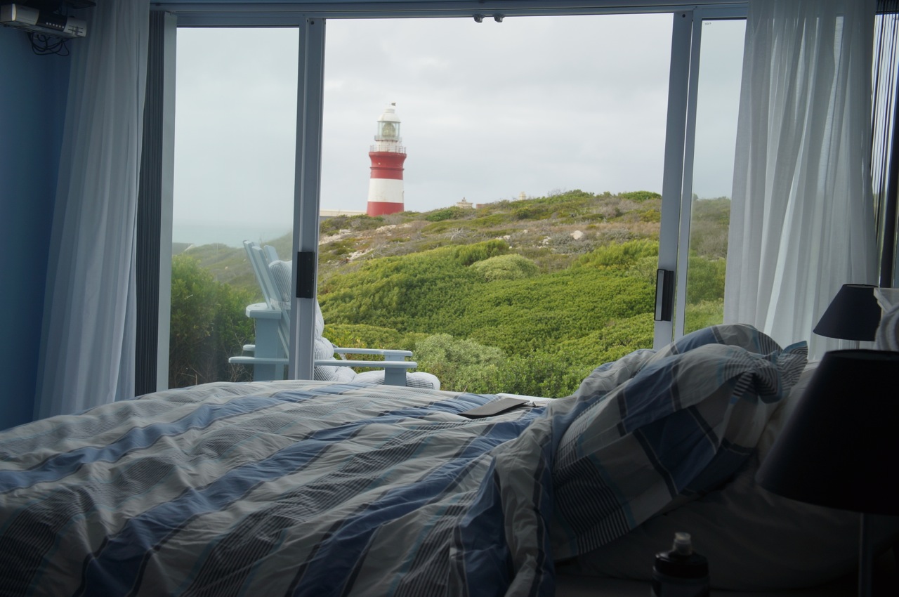 A CIDADE DE CAPE AGULHAS É PEQUENA PORÉM MUITO ACOLHEDORA E COM RESTAURANTES DELICIOSOS. FICAMOS NUMA POUSADA MUITO GOSTOSA E NOSSO QUARTO TINHA VISTA PARA O FAROL DE AGULHAS. FOI INESQUECÍVEL.