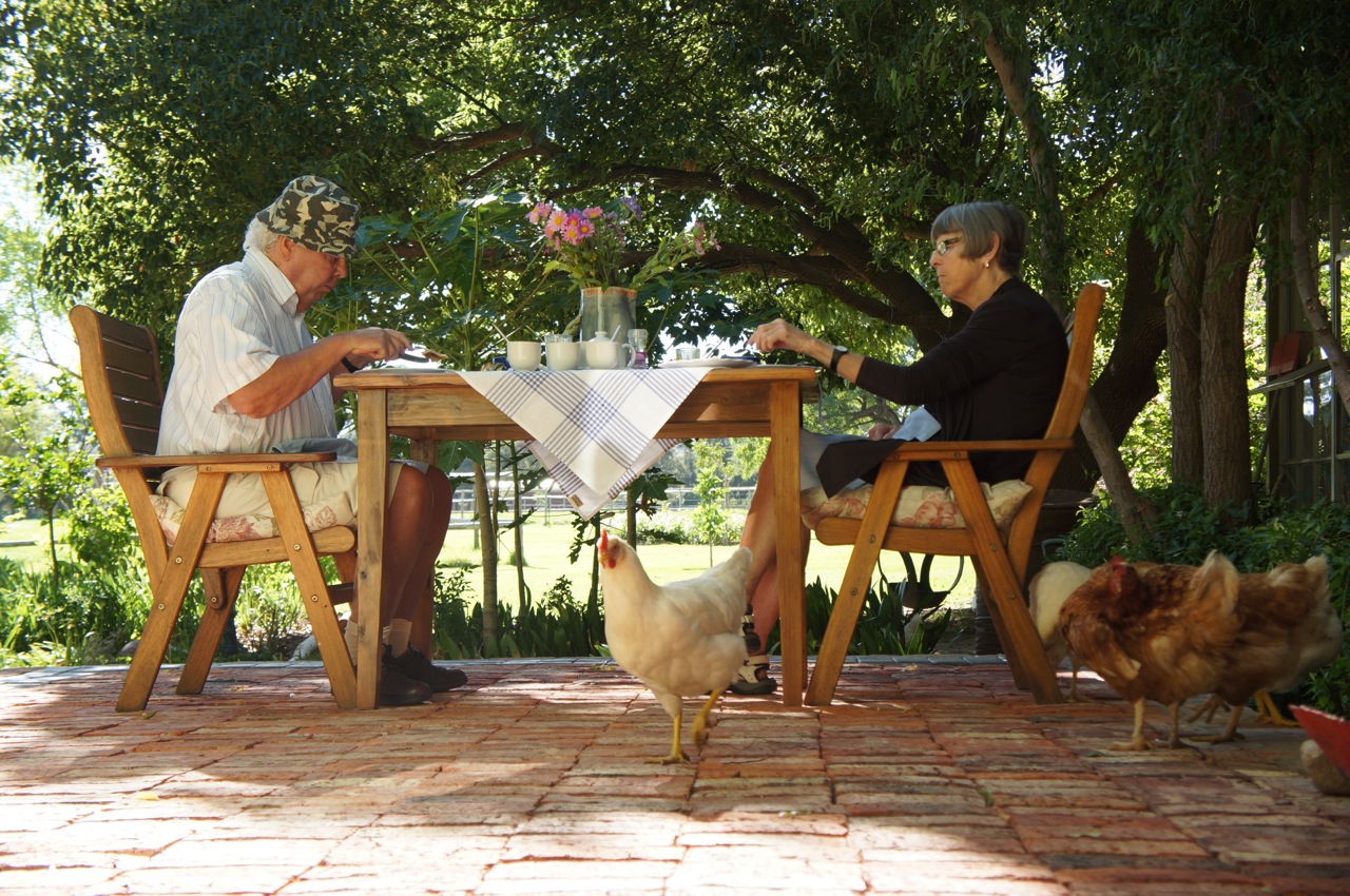 PASSAMOS UMA NOITE EM MONTAGU. E A POUSADA ESCOLHIDA PELA FLAP TUR FOI UM ACHADO. UM CENÁRIO CAMPESTRE EM PLENA CIDADE. GALINHAS D’ANGOLA, CAVALOS, CÃES E GATOS SÃO OS ANFITRIÕES PERFEITOS PARA QUEM CURTE O CONTATO COM A NATUREZA.