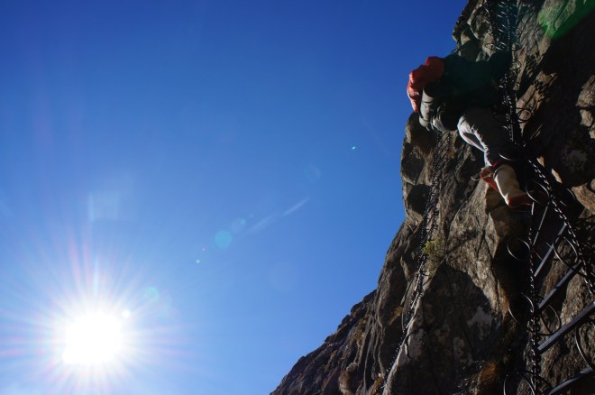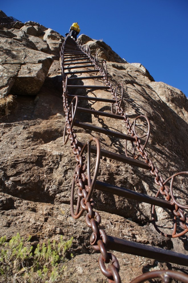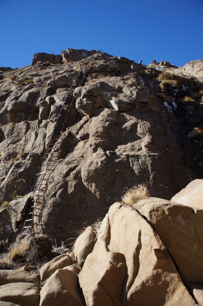 No dia seguinte peguei a trilha bem cedo, e após 16 km caminhando, me deparei com uma escada muito longa e perigosa na subida final.