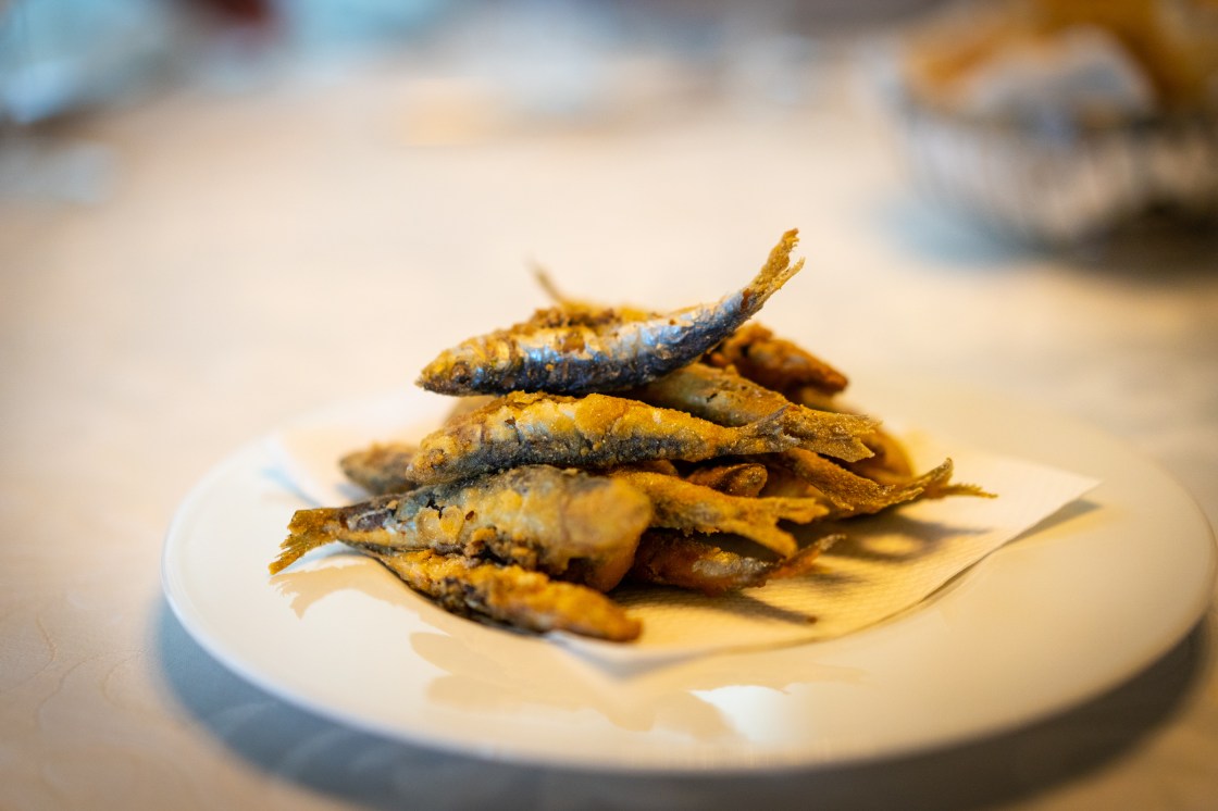 Bife de vazio, que pra gente seria a fraldinha. Ela vem acompanhada de batatas fritas. A carne veio no ponto perfeito! Bacalhau assado com batatas. Era impossível parar de comer de tão bom! Cabrito assado ao forno com batatas. Estava simplesmente, maravilhoso!! Polvo empanado. E ainda provamos o arroz de feijão, isso mesmo! Não é arroz com feijão… É uma receita típica portuguesa, com feijão vermelho e ideal para os dias frios. Leva chouriço e a consistência é quase a de um risoto.