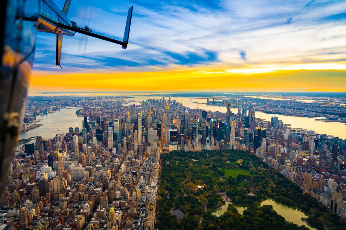 O helicóptero decolou logo após o pôr do sol e a paisagem era deslumbrante. Levei a zoom 24-105 f/4 na Sony a7 III. Depois, conclui que teria sido melhor uma lente mais clara, como uma 16 mm f/1.4, para não ter que puxar tanto o ISO. Na manhã seguinte saí para um segundo vôo. Havia bastante névoa, mas dei sorte e o tempo abriu minutos depois – aliás, em Nova York o clima é sempre uma loteria; se não estiver chovendo ou com muita neblina, sempre dá para aproveitar.